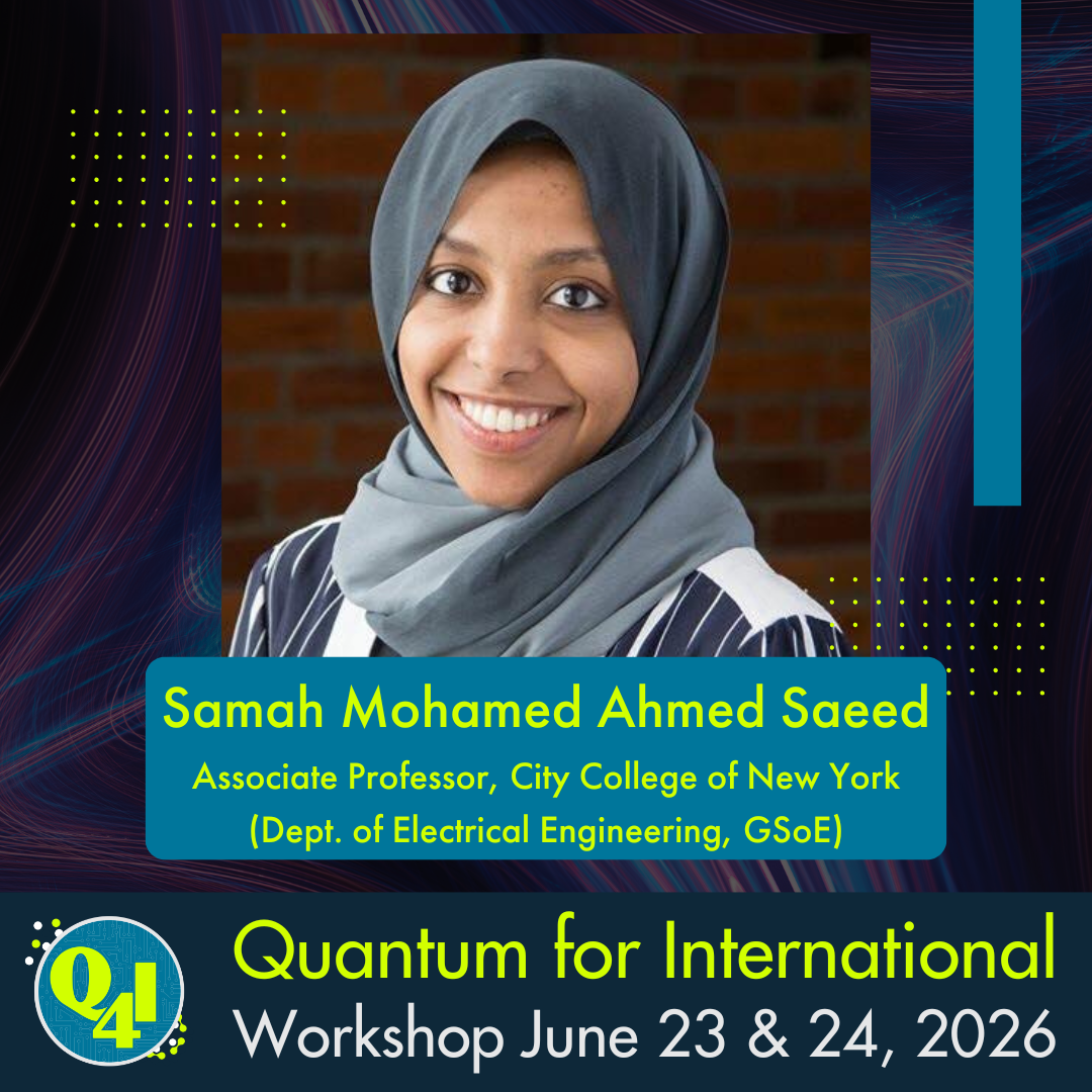 Samah Mohamed Ahmed Saeed is an associate professor in the Electrical Engineering Department at the Grove School of Engineering, City College of New York (CCNY). She is the director of SEcure & Reliable Systems Laboratory (SERS). Dr. Saeed is also an affiliated faculty at Lawrence Berkeley National Lab. She earned her Ph.D. in the Computer Science and Engineering Department at the New York University Tandon School of Engineering. Her research interests span quantum circuit design and synthesis for reliable and secure quantum systems, quantum networking, hardware security, and testing digital integrated circuits. Dr. Saeed has received several awards, including the best paper award at IEEE VLSI Test Symposium, the Pearl Brownstein Doctoral Research Award by NYU Polytechnic School of Engineering, the TTTC’s E.J. McCluskey Best Doctoral Thesis Award at the IEEE International Test Conference, and the best poster award at Quantum Computing Applications and Systems (QCAS) Workshop. Her research in quantum computing has been funded by the Department of Energy, Google, Air Force Research Laboratory and the Department of Education.