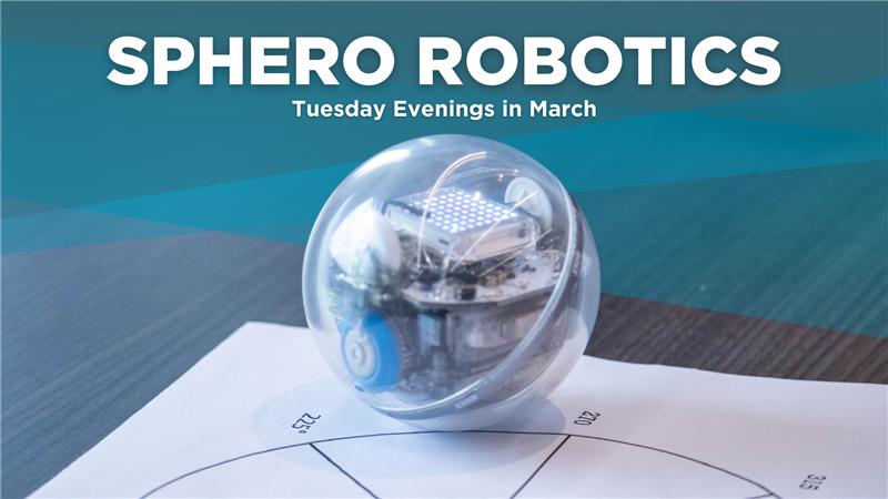 Sphero Robotics will run the first four Tuesdays in March: March 3, 10, 17, 24, from 6:00pm-7:30pm. Cost: $60 for the full series. Parents will be responsible for transportation to and from the program.